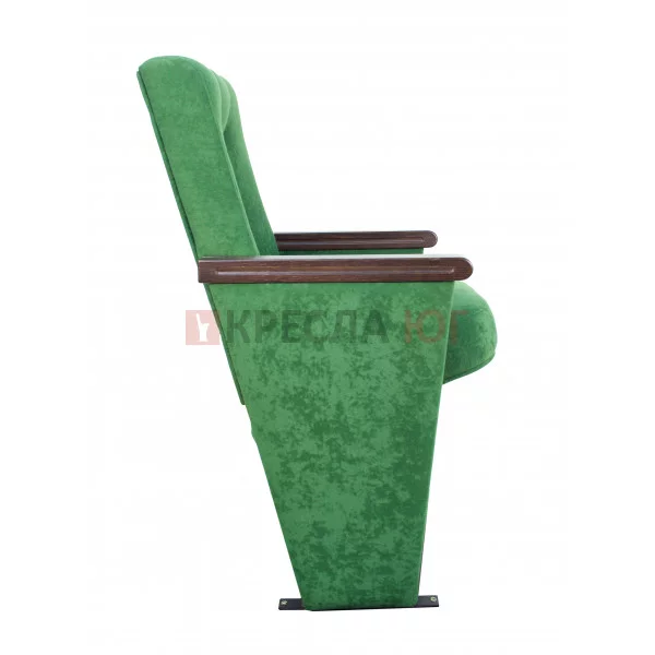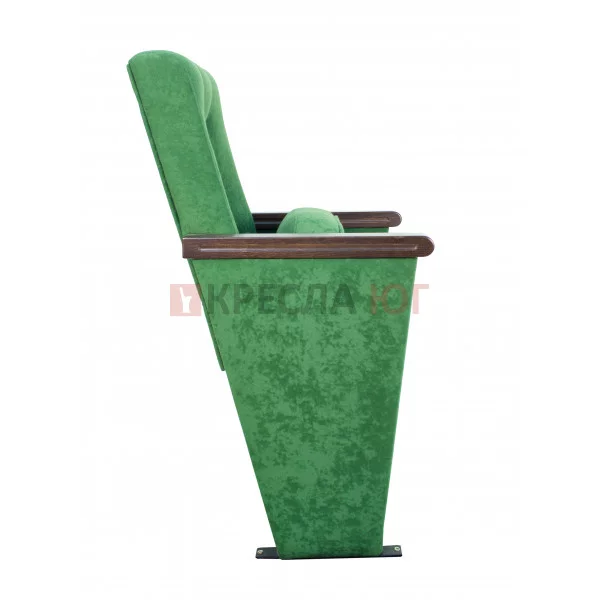 Кресло с креплением к полу, в ткани, с подлокотниками. сидение откидное, спинка с декоративной прошивкой. Толщина подушки 140мм, с тканевой или шпонированной боковиной и лицевой планкой.