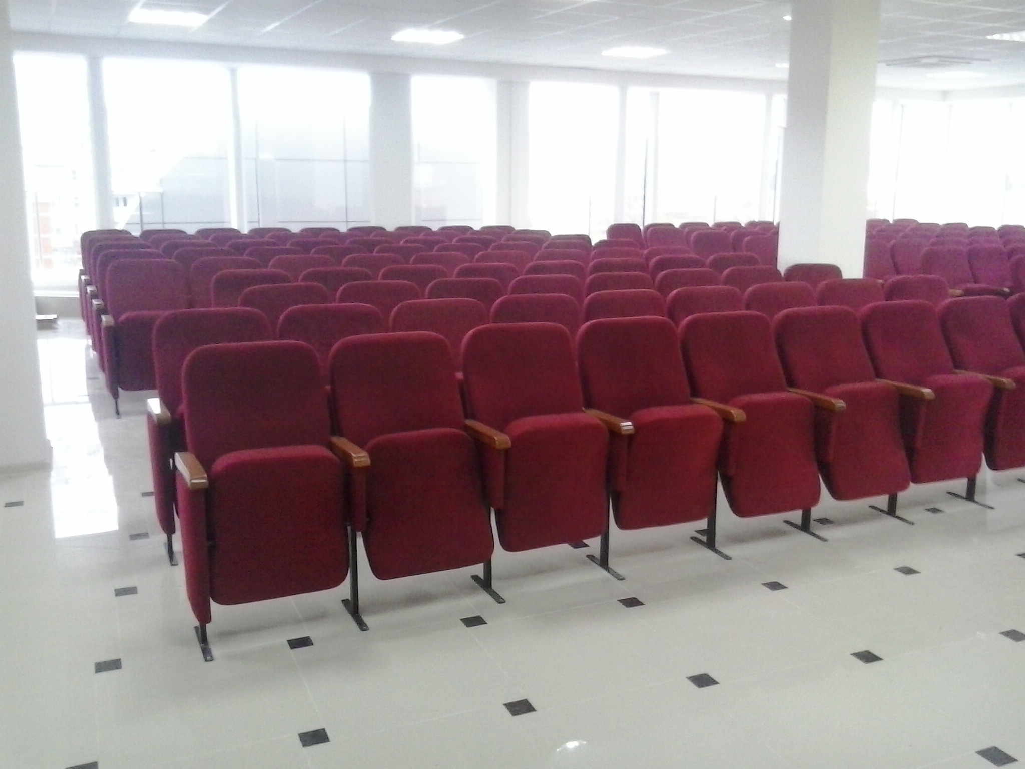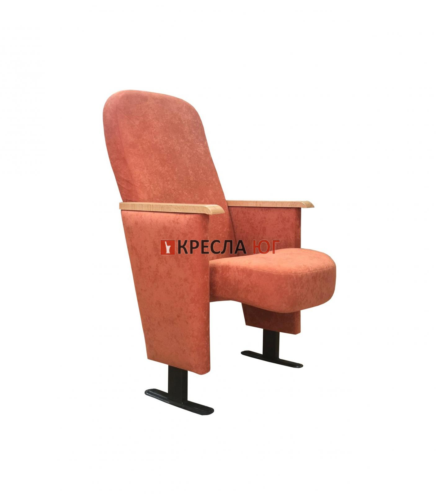 Кресло с креплением к полу, в ткани, винилис-коже, с подлокотниками, сидение откидное. Толщина подушки сиденья 130 мм, с тканевой боковиной.